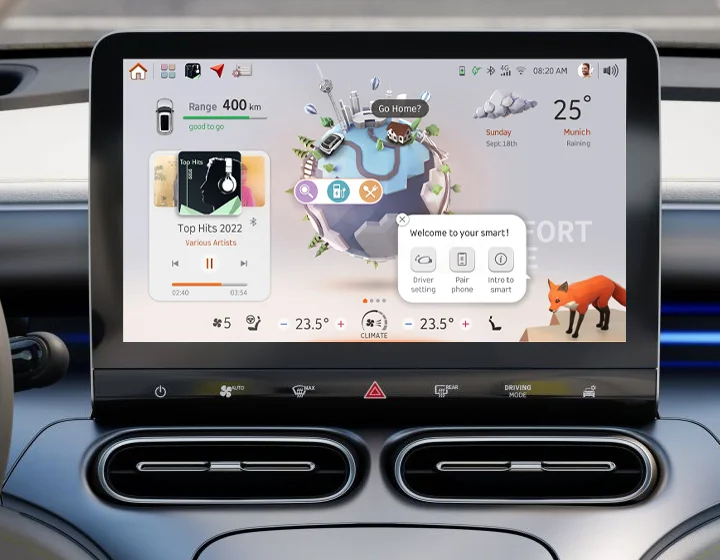 Каждая поездка становится умнее. Получайте данные о дорожной ситуации в реальном времени, информацию о точках интереса и проверяйте запас хода прямо на карте — не отрывая рук от руля.